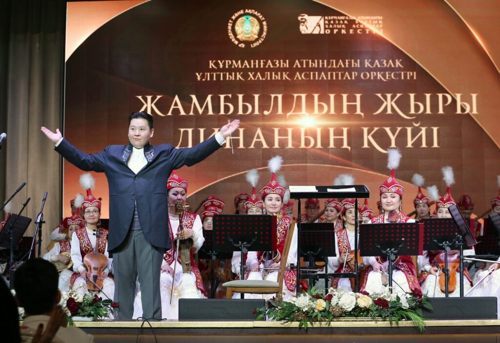 Казахский национальный оркестр народных инструментов имени Курмангазы выступил на открытии выставки «АХМЕТ ЖУБАНОВ: ДӘУІР ҮНІ», прошедшей в Национальном центральном музее Республики Казахстан.